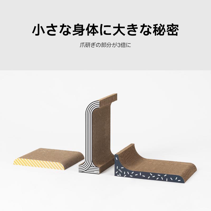 3つの爪とぎで構成されており、それぞれ取り外して使用できます。裏表両面使えるので、分解するとつめとぎ部分の面積は3倍に!