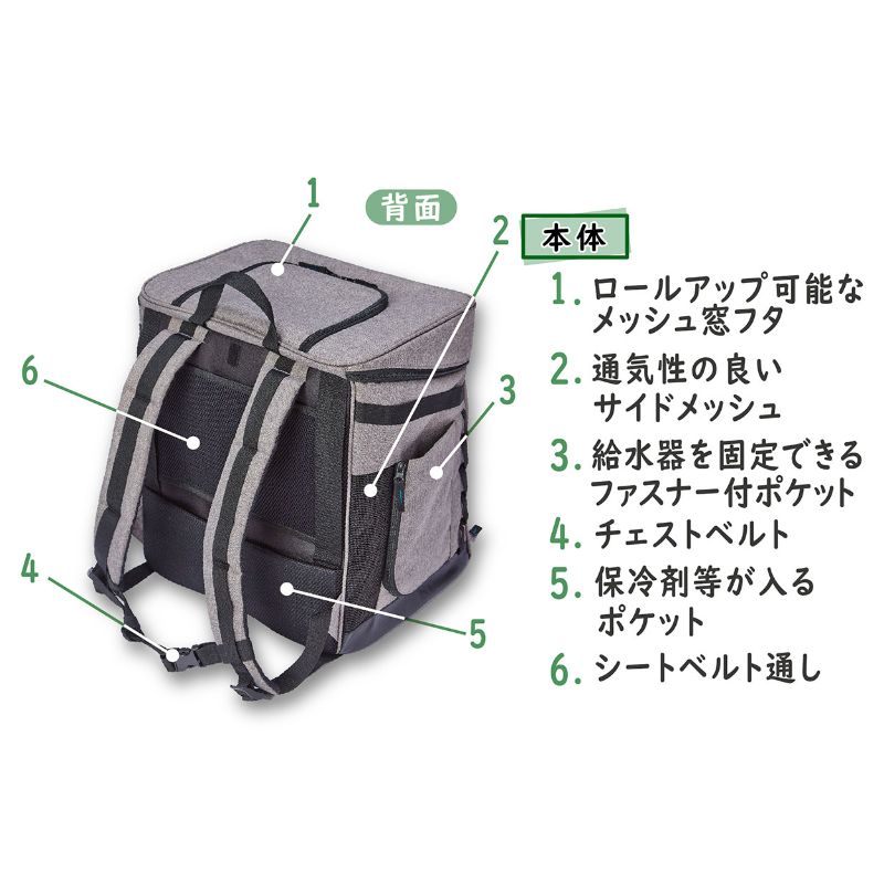 前面を広げて快適に過ごせるリュックキャリー。
