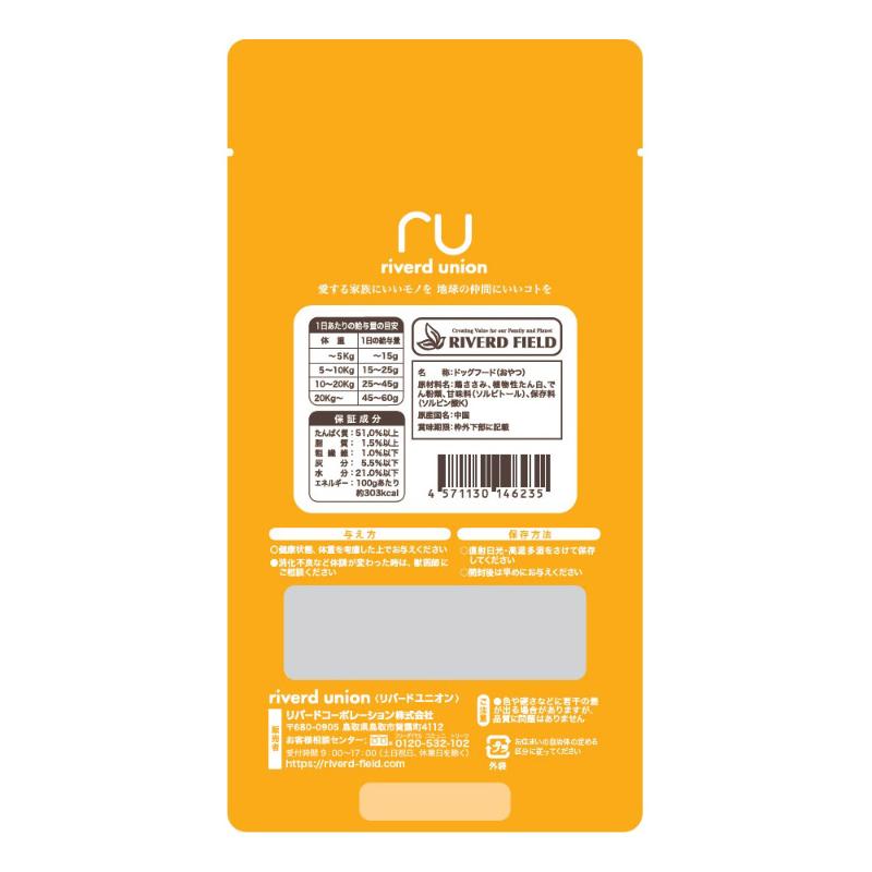| 素材 | <原材料> 鶏ささみ、植物性たん白、でん粉類、甘味料(ソルビトール)、保存料(ソルビン酸K) <保証成分> たんぱく質51.0%以上、脂質1.5%以上、粗繊維1.0%以下、灰分5.5%以下、水分21.0%以下 <エネルギー> 約303kcal/100g |