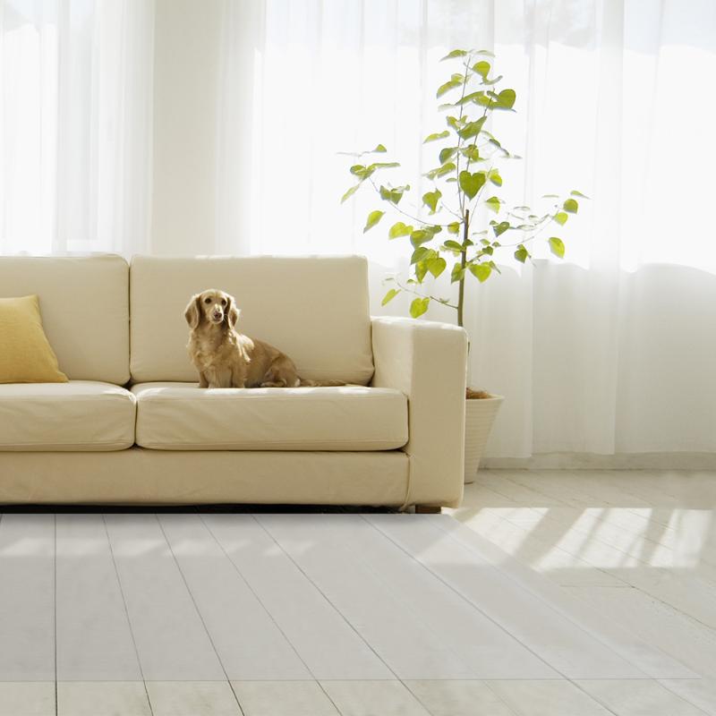 ペットに最適、表面防滑性機能付で滑りにくくペットに安全、透明柄で床の柄を生かせる、防水性の高い、臭いも残りのくいペットマット