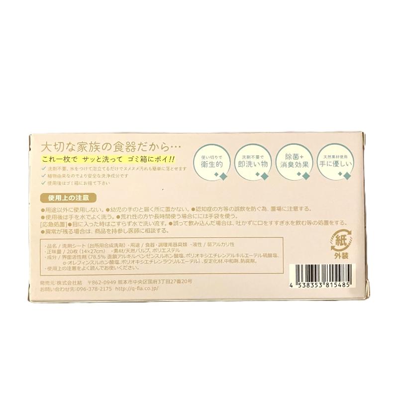 ・シートに水を含ませ食器を洗い、きれいな水で洗い流してください。
