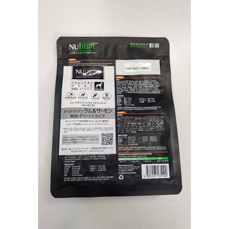 [ファンタジーワールド(直送)]ニュートライプ グレインフリードライ ドッグ ラム&サーモンwithグリーントライプ 200g <ペット専門店商材>【決算セール】