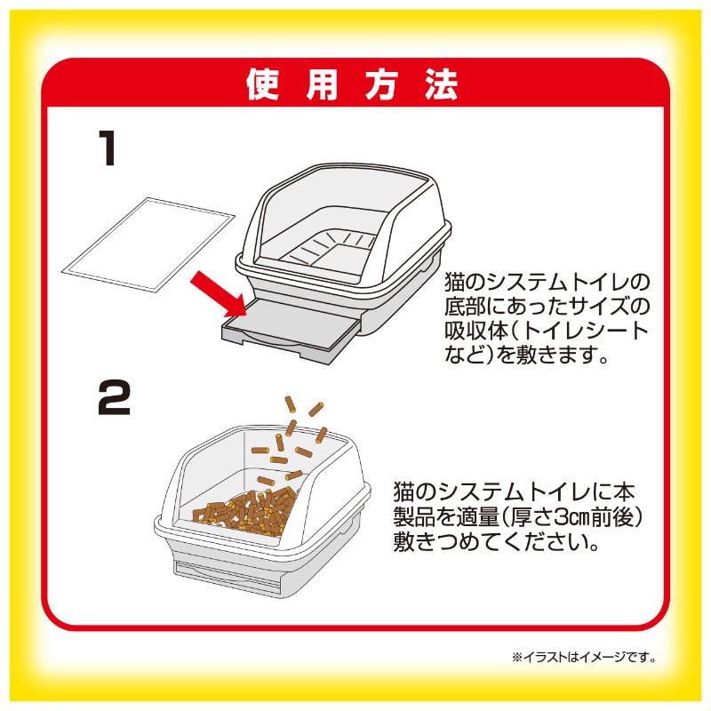 ・猫のシステムトイレに本製品を適量(厚さ3cm前後)敷きつめてください