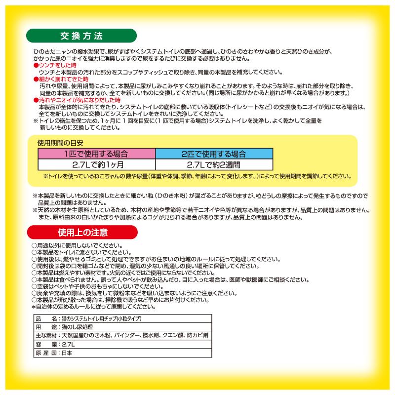 ・国産天然ひのきを使用した大粒タイプのシステムトイレ用猫砂です。