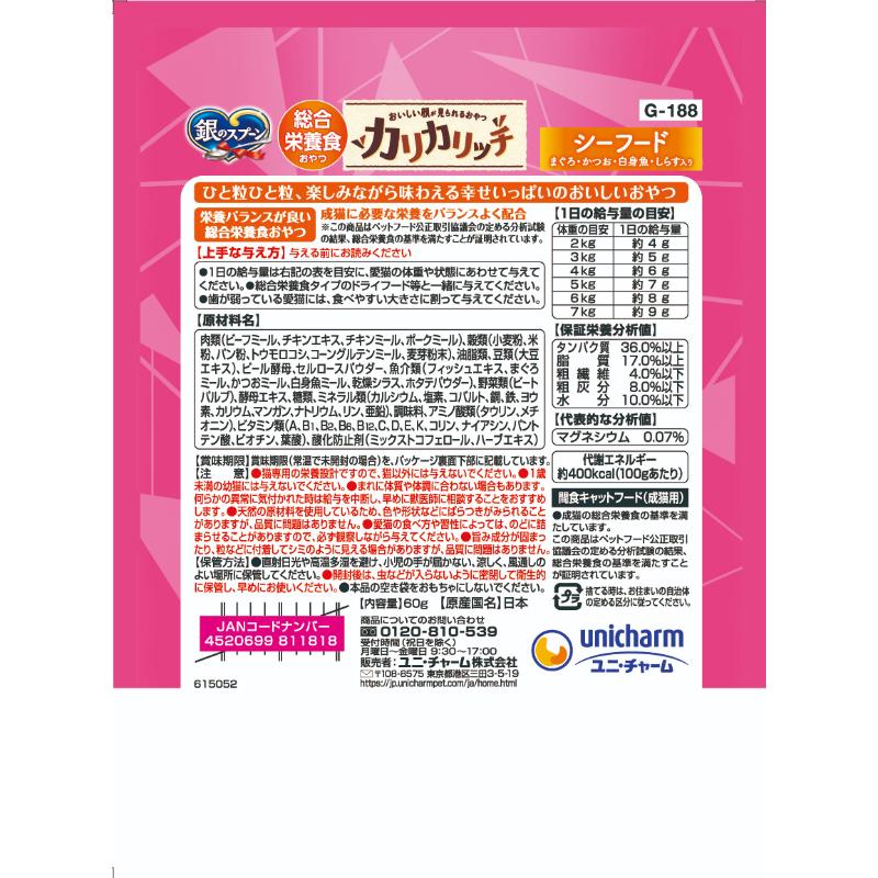 [ユニ・チャーム]銀のスプーン おいしい顔が見られるおやつ カリカリッチ 総合栄養食シーフード 60g