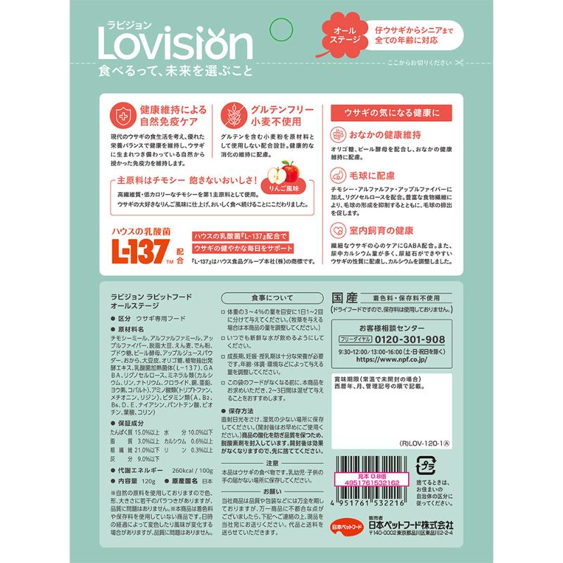 [日本ペットフード]ラビジョン ラビットフード オールステージ 120g