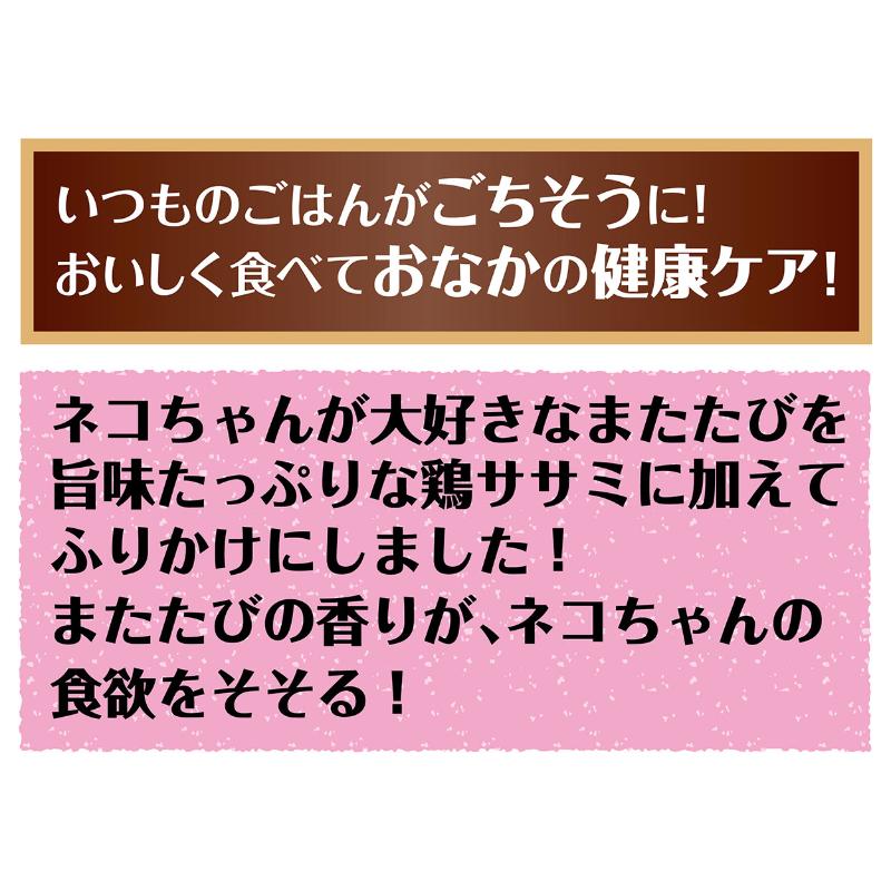 ・ネコちゃんの大好きなまたたびを、旨味たっぷりな鶏ササミの加えてふりかけにしました。