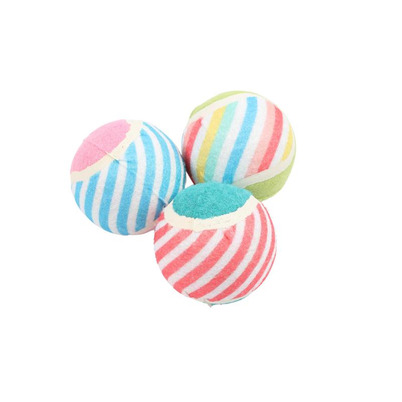 ・軽くて転がしやすいテニスボールタイプのおもちゃを、便利な3個セットにしました。