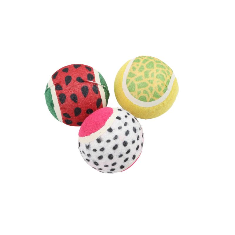 ・軽くて転がしやすいテニスボールタイプのおもちゃを、便利な3個セットにしました。