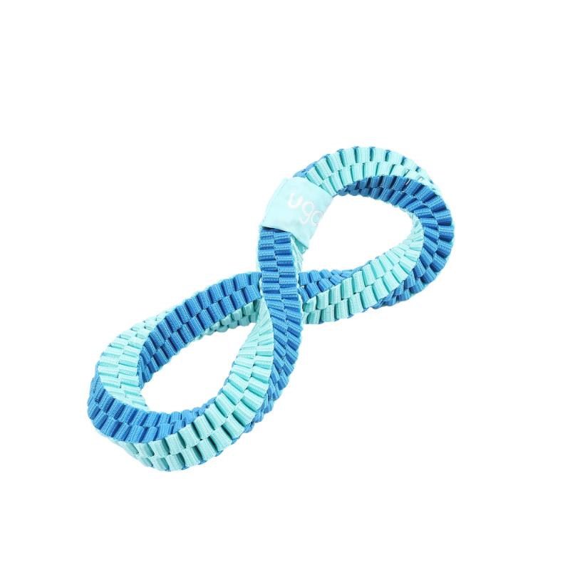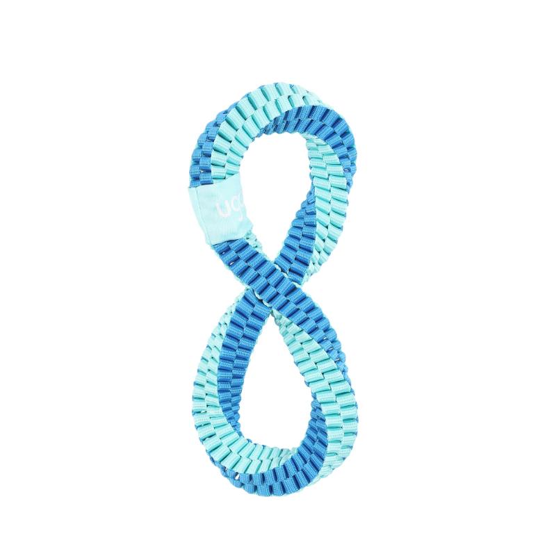 ・丈夫なナイロンテープを2重の輪つなぎのように編み、さらに「無限」を表すインフィニティ(∞)型に捻りを加えた不思議な形状の犬用おもちゃです。