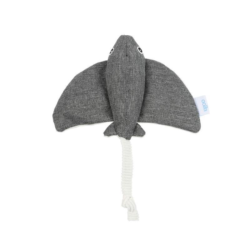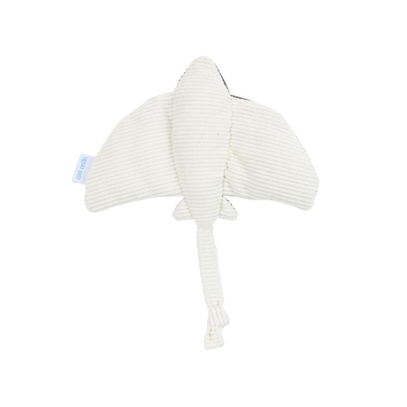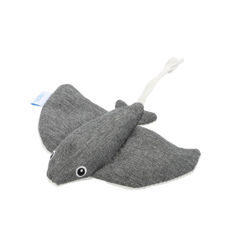 ・カシャカシャ鳴る素材でできた大きなヒレを持つエイ型ぬいぐるみです。胴体に小さなスクイーカーが入っています。