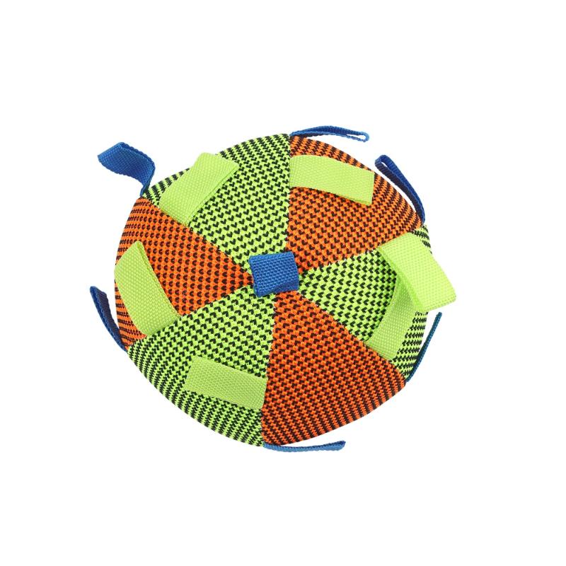 布テープで作られた複数のストラップがどこからでもくわえやすく、振り回し&引っ張り遊びに最適。