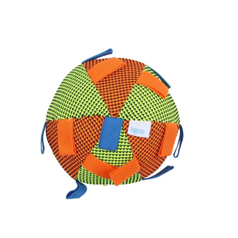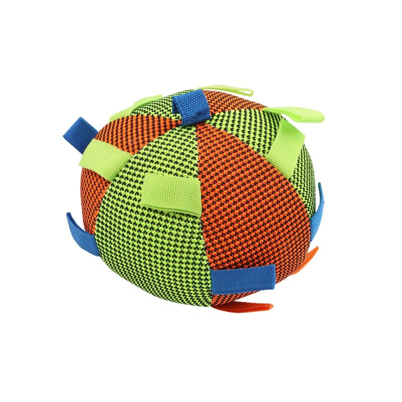 ・メッシュ生地とたくさんの布テープを組み合わせた、BIGなボール型犬用おもちゃです。
