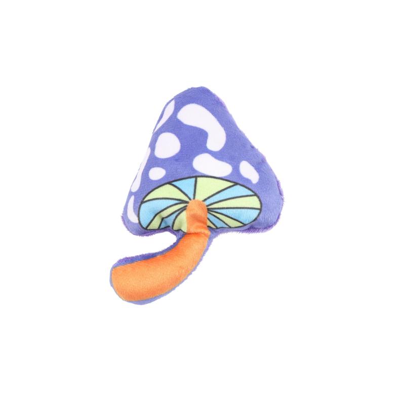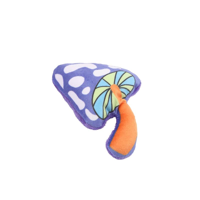 ・ポップなカラーが目を引く、きのこモチーフの猫用おもちゃです。