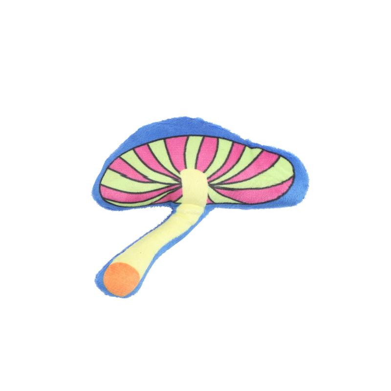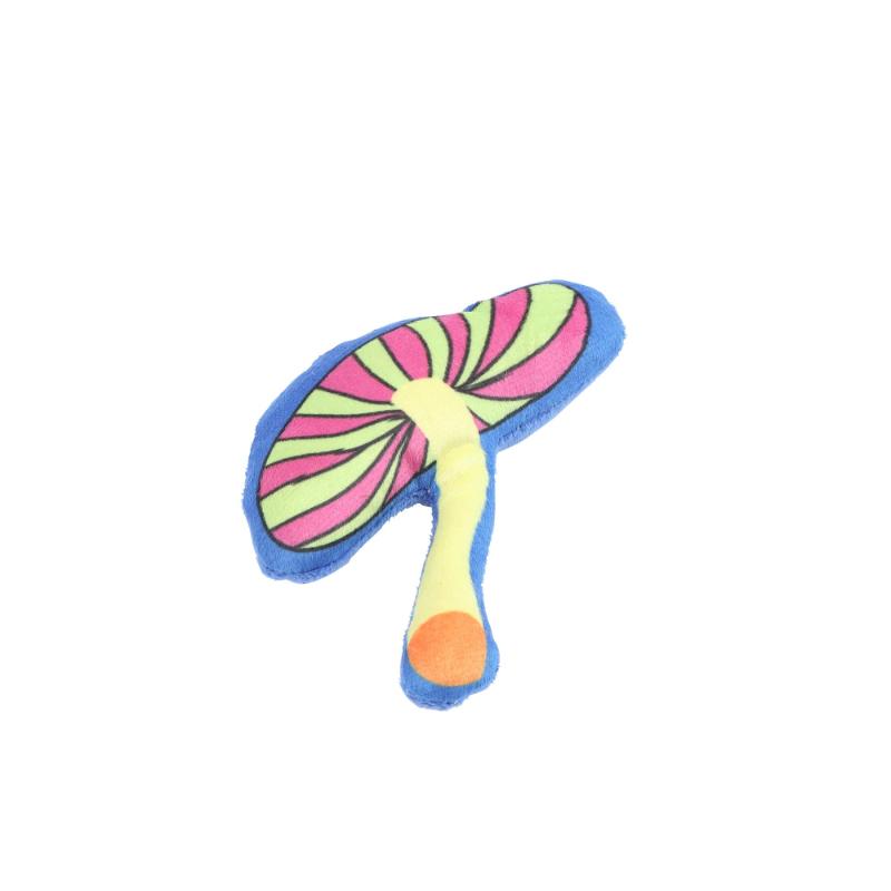 ・ポップなカラーが目を引く、きのこモチーフの猫用おもちゃです。