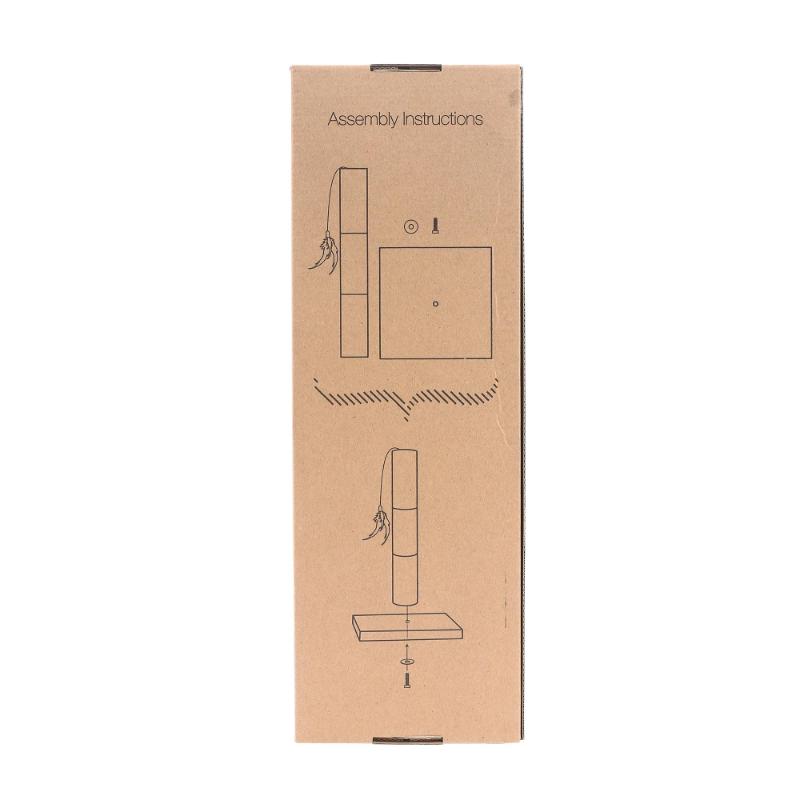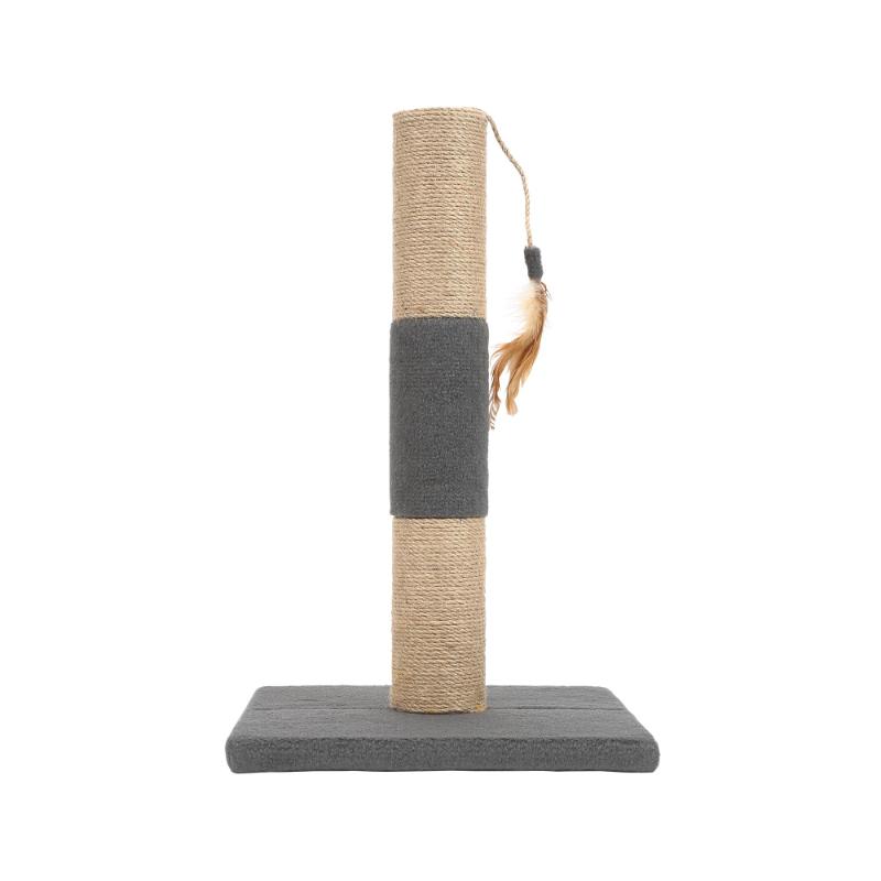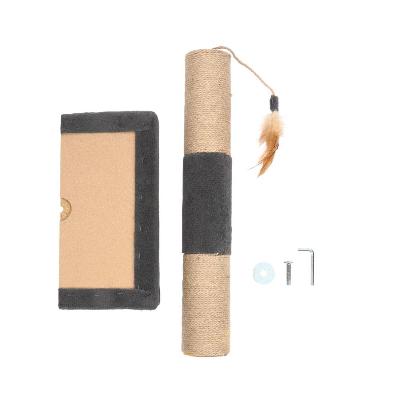 ・直径7.5cmのしっかりとしたポールに麻ロープが巻いてあります。ポールのてっぺんから羽根のおもちゃが吊り下げられており、爪とぎと遊びを同時に楽しめます。
