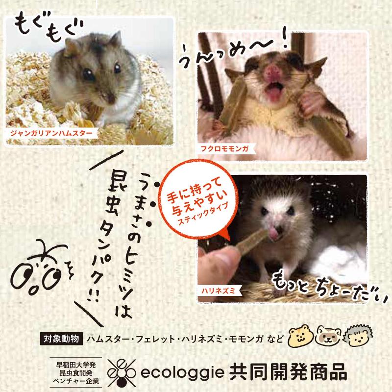 ・動物性たん白質を摂らせてあげたいけど、昆虫が苦手な方に。与えやすいスティックタイプ。