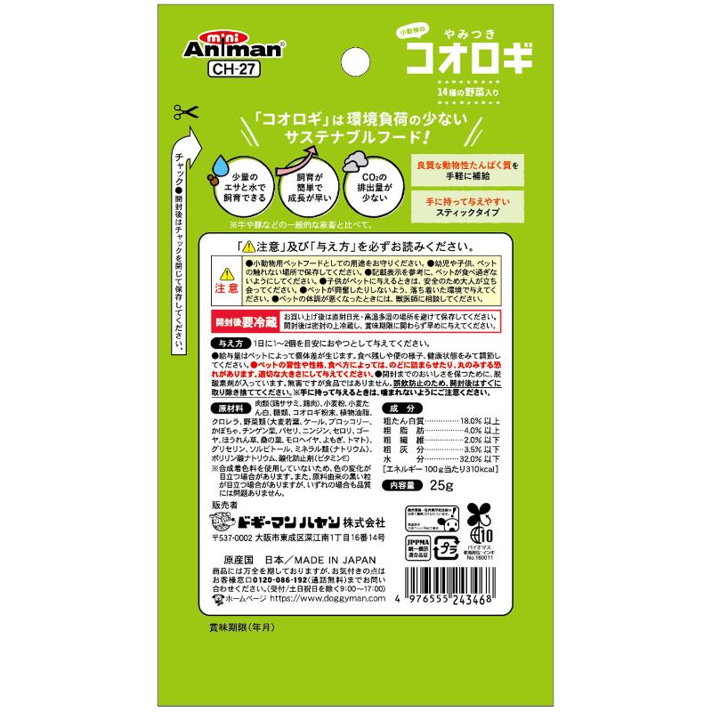 [ドギーマンハヤシ]小動物のやみつきコオロギ 14種の野菜入り 25g