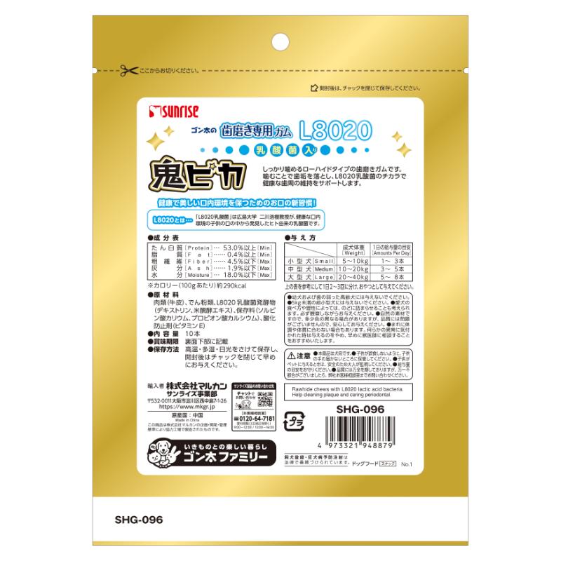 [マルカン サンライズ]ゴン太の歯磨き専用ガム L8020乳酸菌入り 鬼ピカ Mサイズ 10本/1セット(5点) ※数量限定商品【ご予約受付3/10まで】展示会イチ推し商品