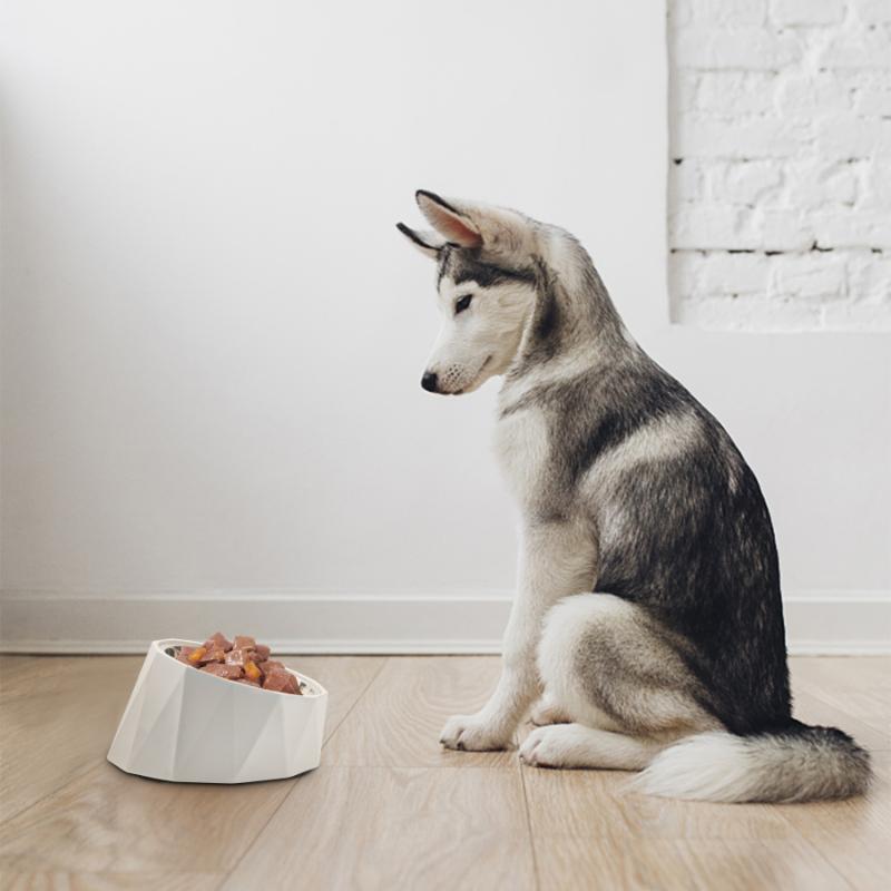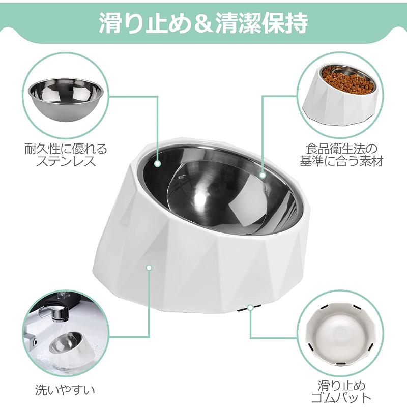 ・適度な高さと15度の傾斜が付いており、首や腰への負担を軽減するスタイリッシュなデザインのフードボウルです。愛犬が楽な姿勢で餌を食べることができ、嘔吐も改善します。
