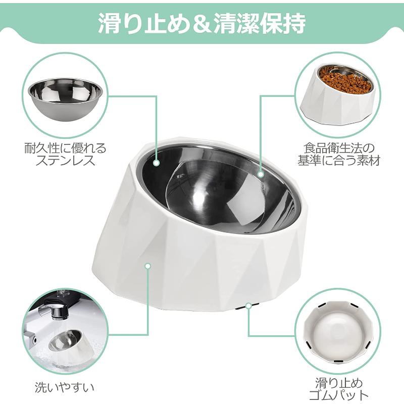 ・適度な高さと15度の傾斜が付いており、首や腰への負担を軽減するスタイリッシュなデザインのフードボウルです。愛犬が楽な姿勢で餌を食べることができ、嘔吐も改善します。