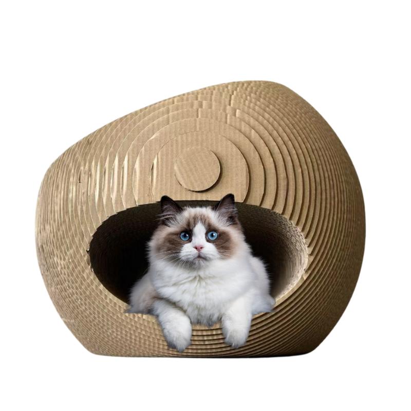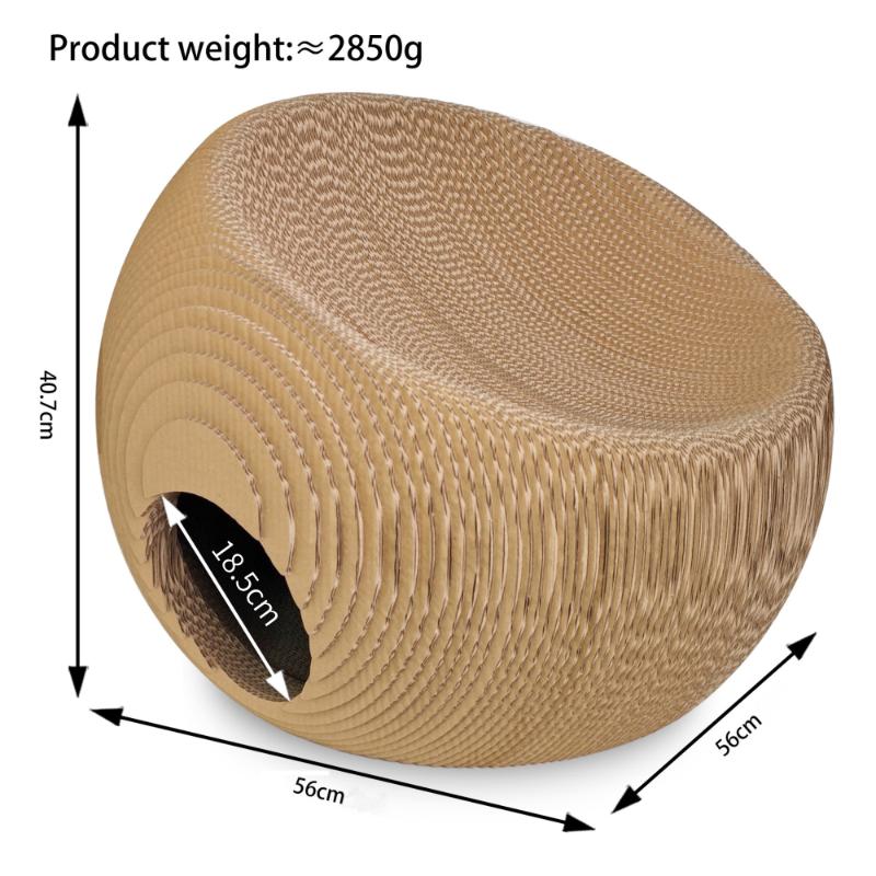 ・一度入ると秘密基地の様な空間が待ち受ける内部に猫さんが好きなカーブ形状の上部は場所の取り合いで多頭飼いの方にピッタリな豪華爪とぎ型ハウス