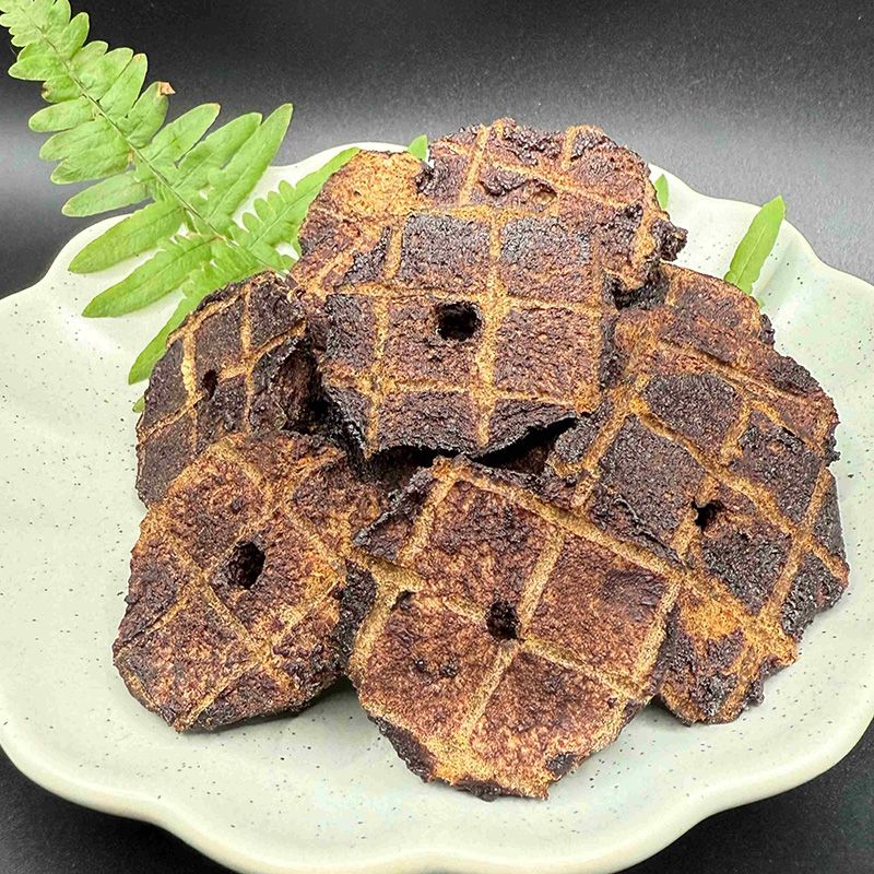 ・カンガルーモモ肉をチップ状に成型後乾燥しました。