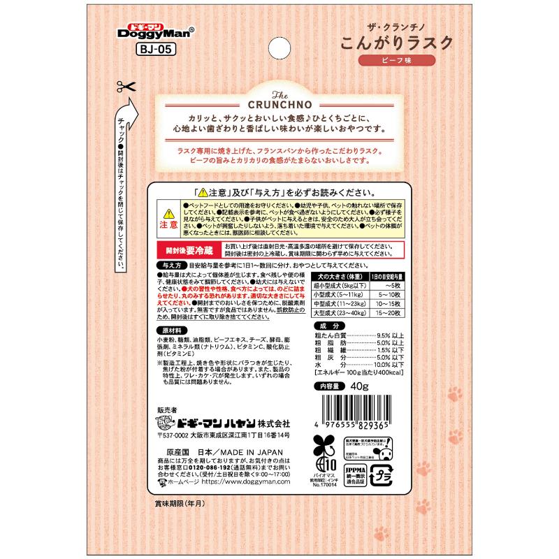 [ドギーマンハヤシ]The CRUNCHNO こんがりラスク ビーフ味 40g
