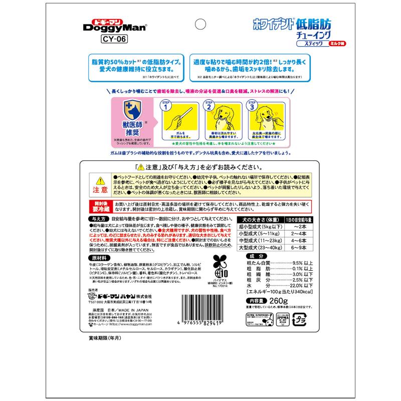 [ドギーマンハヤシ]ホワイデント 低脂肪 チューイングスティック ミルク味 260g(130g×2袋)