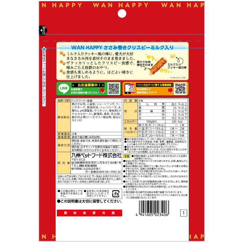 [九州ペットフード]WAN HAPPY ささみ巻きクリスピー ミルク入り 8本入