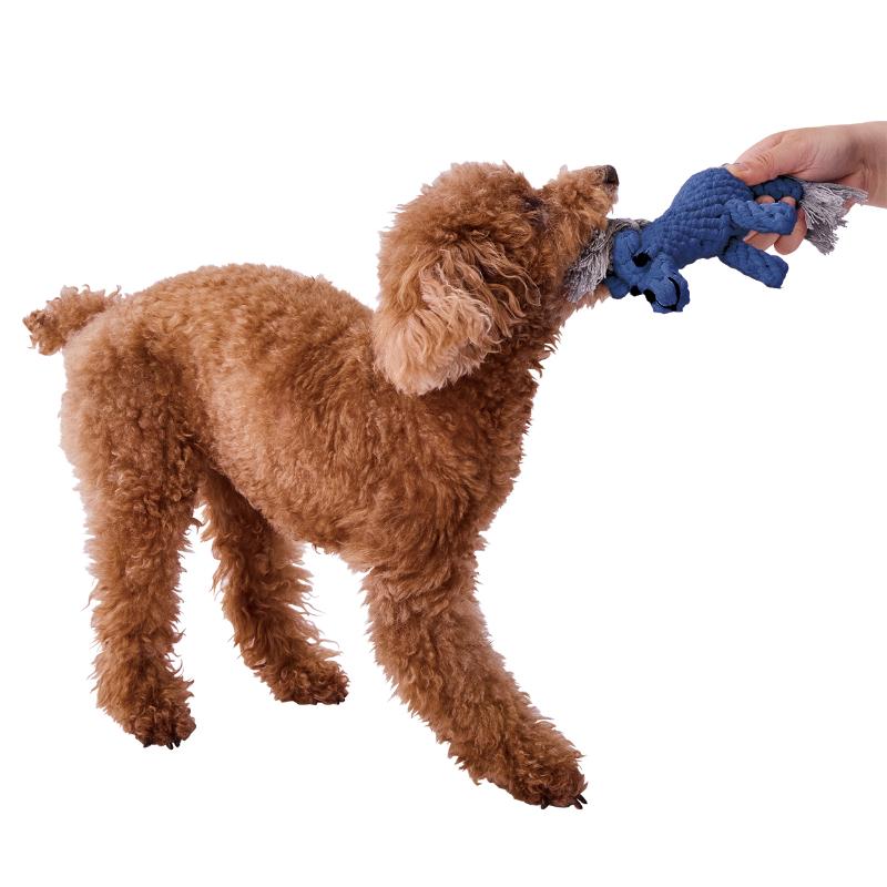 イタリア語で青い馬という意味をもつブルカヴァロ。たて髪やしっぽは噛んで引っ張っても抜けにくい仕様。奥まで歯がしっかり入るので、デンタル効果も。編み目におやつを挟んでノーズワークおもちゃにも。ブラッシング効果も期待できます。