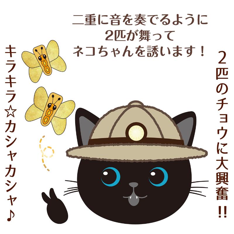 二重に音を奏でるように2匹が舞って猫ちゃんを誘います!