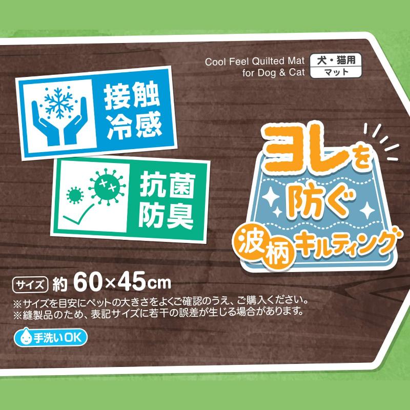 【アウトレット】[ペットプロジャパン]Homey ひんやり冷感スクエアベッド ナチュラル柄 S グリーン