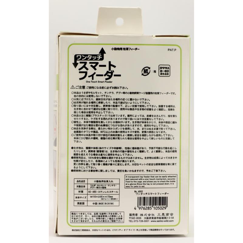 | 注意事項 | ・本品はうさぎやモルモット、チンチラ、デグー等の小動物飼育ケージ設置用の牧草フィーダーです。他の目的には使用しないで下さい。