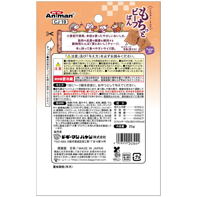 [ドギーマンハヤシ]無添加良品 ハムスター・リスのもちっとビーフぱん 25g