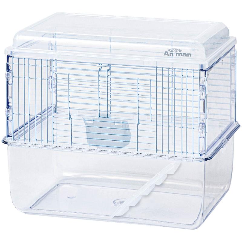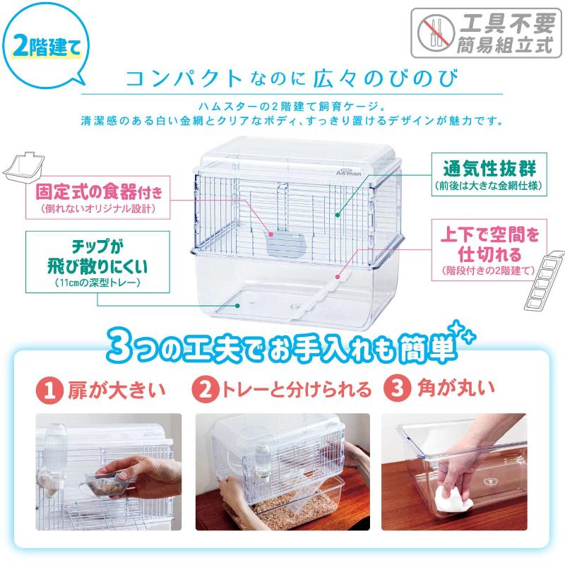 ・上下で空間を仕切れる階段付きの2階建て!白い金網とクリアなボディで、インテリアに馴染みやすいケージです。