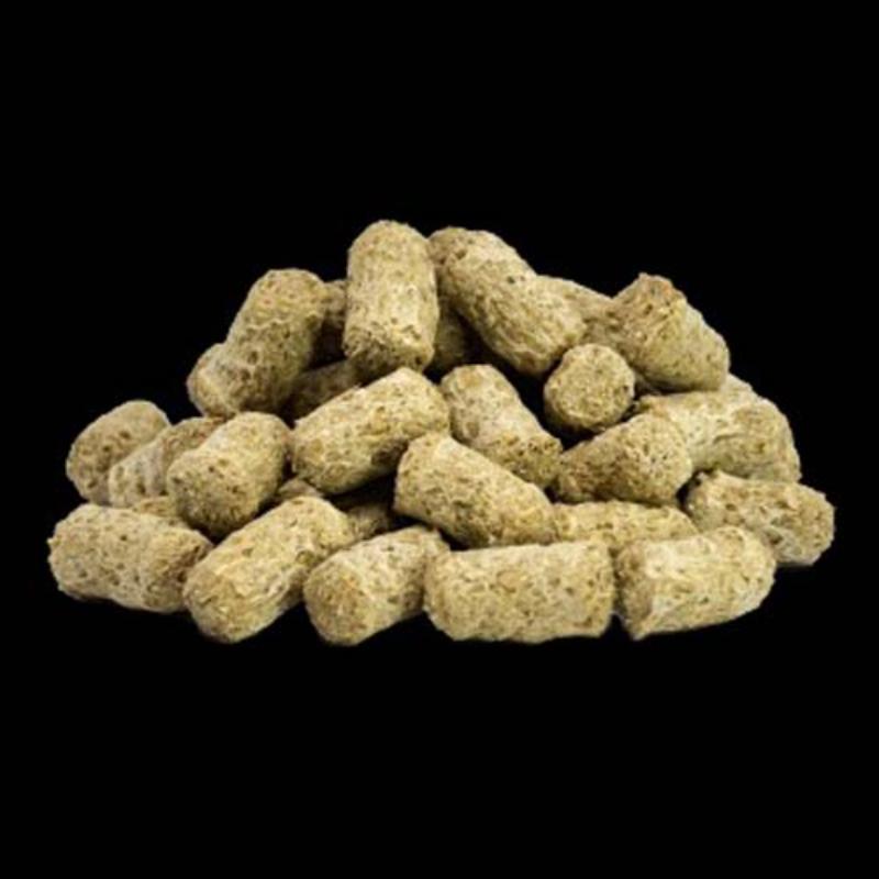 | 素材 | <原材料> 糟糠類(ふすま、米糠・麦糠)、小麦粉、豆類(きな粉、脱脂大豆)、グルコース、コーンミール、牧草(オーツヘイ)、野菜類(ニンジン、キャベツ、甘草、パースニップ)、大豆たん白、オリゴ糖、難消化性デキストリン、ユッカ抽出物、乳酸菌EC-12(殺菌処理)、ミネラル類(炭酸カルシウム、塩化ナトリウム、グルコン酸亜鉛、鉄、銅等ミネラルミックス、ビタミン類(ビタミンA・D・E・B1・B2等ビタミンミックス)、アミノ酸(メチオニン) <保証成分> 粗たん白質15.5%以上、粗脂肪2.0%以上、粗繊維7.0%以下、粗灰分5.5%以下、水分10.0%以下、カルシウム約0.6% <エネルギー> 320kcal/100g |