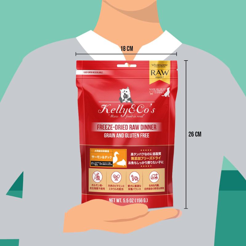 [Kelly&Co's]フリーズドライ犬用総合栄養食 サーモン&ダックフォーミュラ 156g<ペット専門店商材> ●通販サイト掲載販売不可