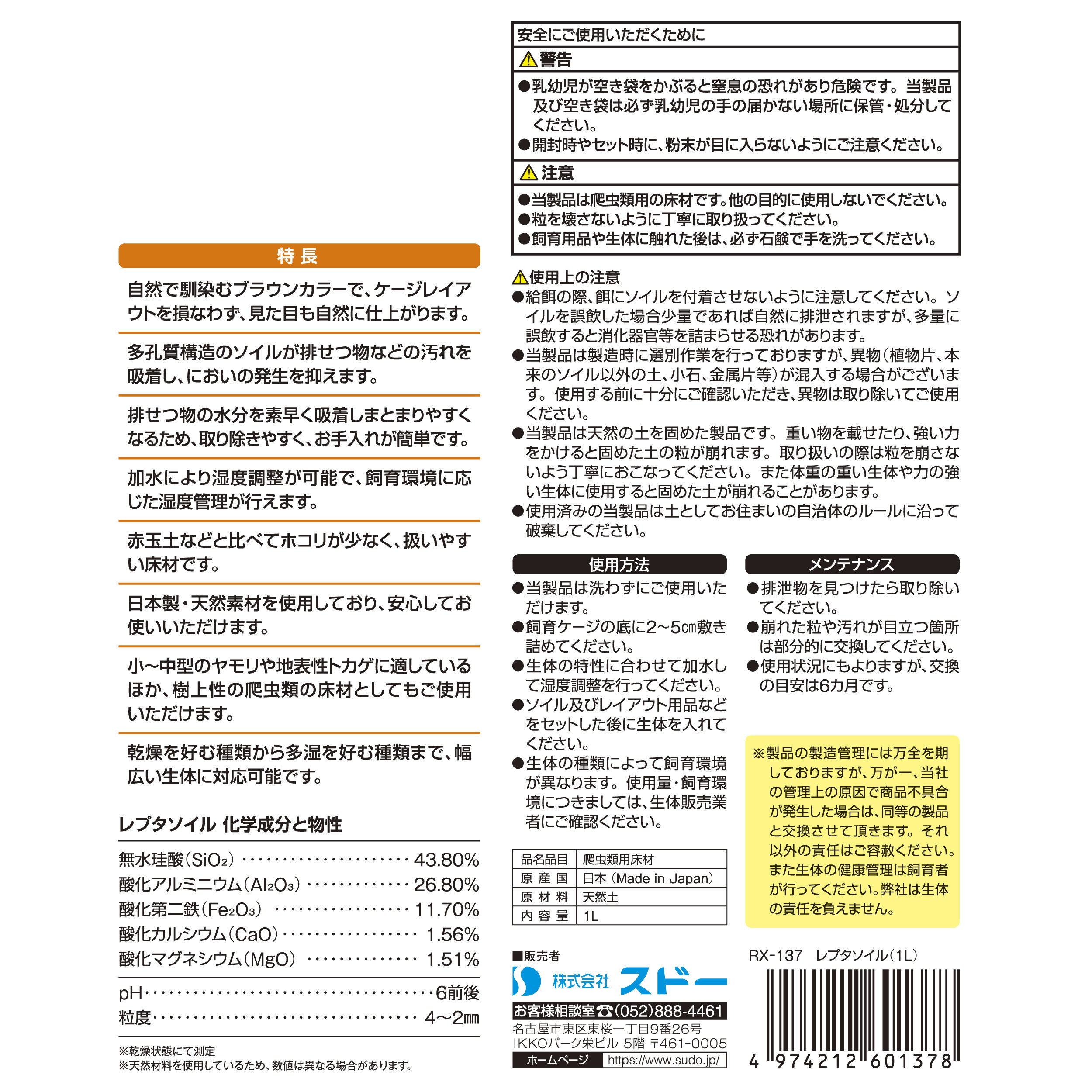 【アウトレット】[スドー]レプタソイル 1L