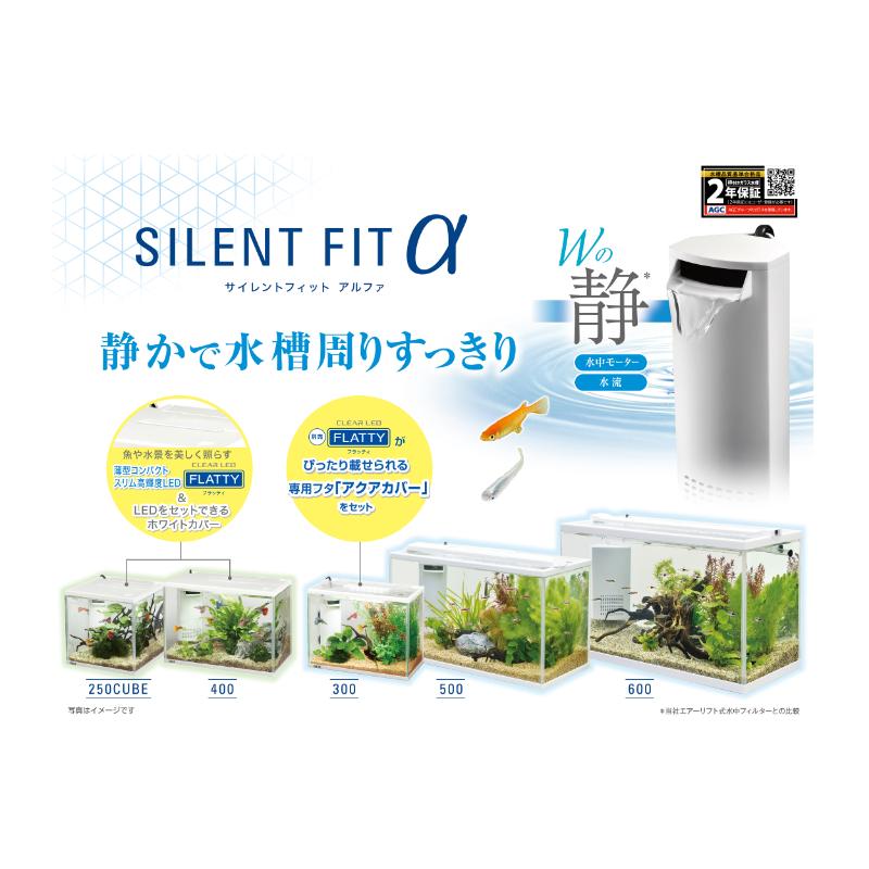 水容量たっぷり約51Lの水槽と、音と水流がWで静かな「ハイブリッドフィルター サイレントフローデュアルホワイト」をセットにしました。
