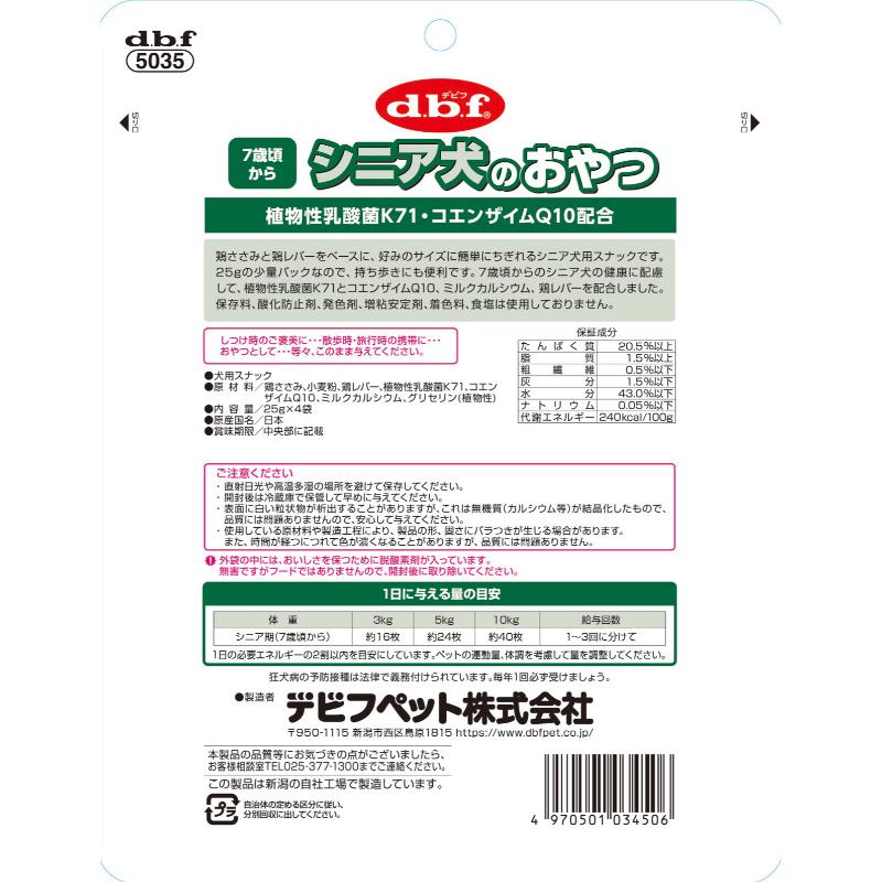 [デビフペット]シニア犬のおやつ 植物性乳酸菌K71・コエンザイムQ10配合 25g×4袋【4月特価】