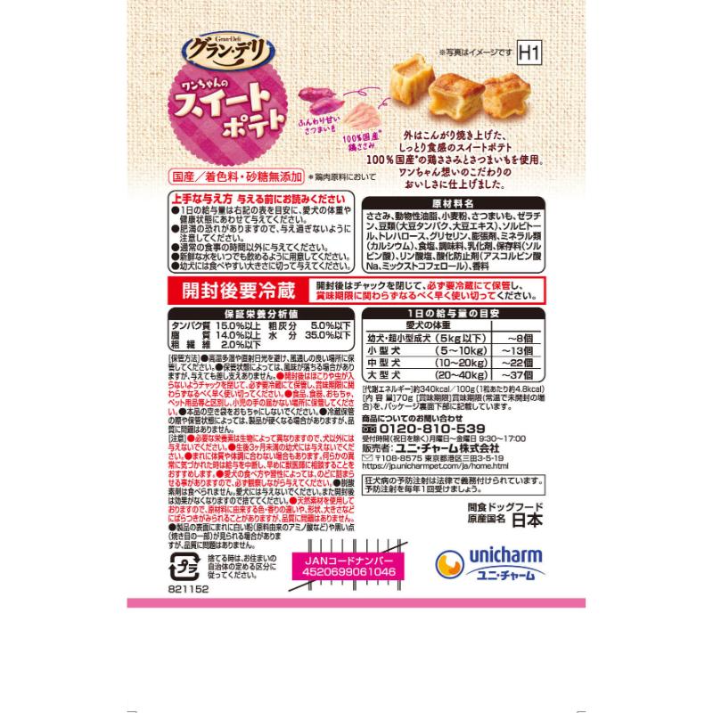 [ユニ・チャーム]グラン・デリ ワンちゃんのスイートポテト 70g【メーカーフェア10】