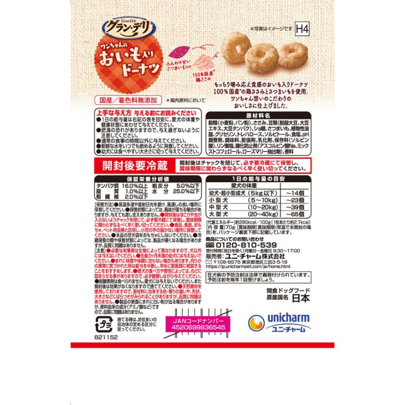 [ユニ・チャーム]グラン・デリ ワンちゃんのおいも入りドーナツ 70g【メーカーフェア10】