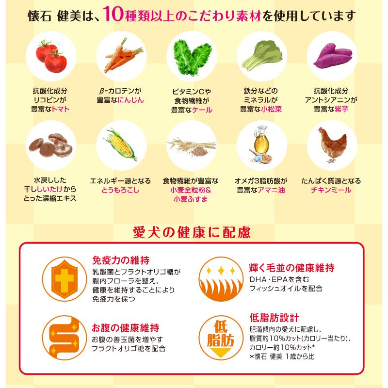 ・肥満傾向の愛犬に配慮し、脂質・カロリーを約10%カット。(懐石 健美 1歳から比)