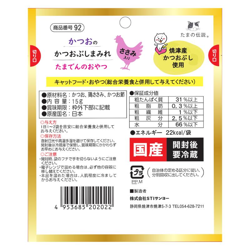 [STIサンヨー]たまの伝説 かつおのかつお節まみれ ささみ入り 15g