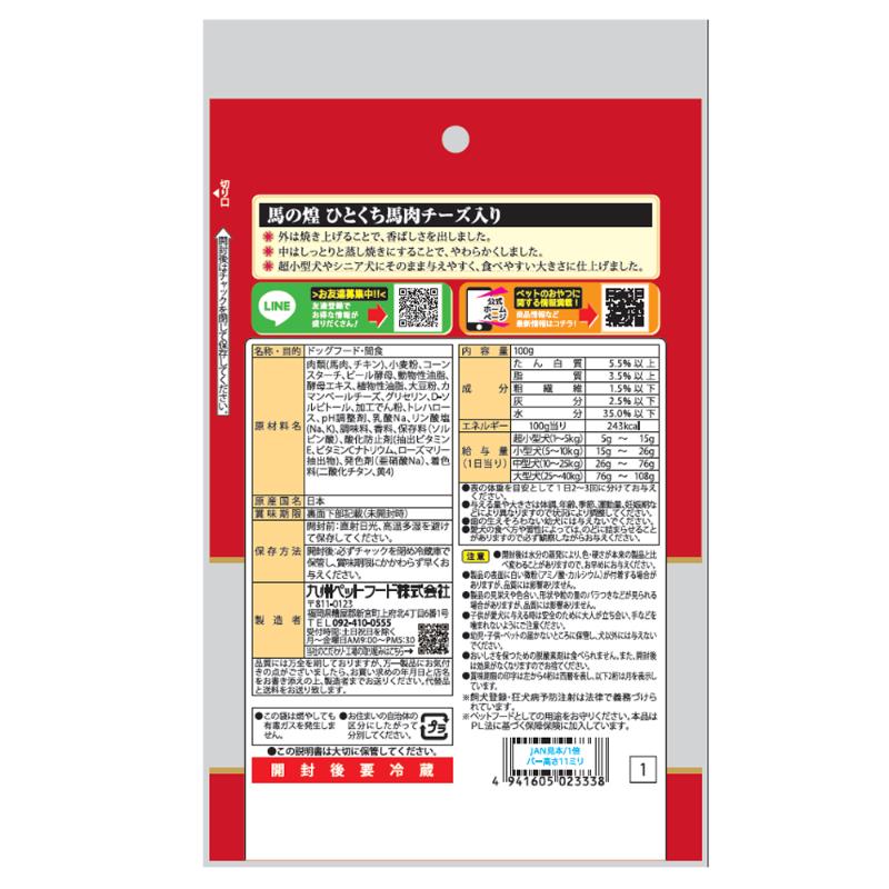 [九州ペットフード]馬の煌 ひとくち馬肉 チーズ入り 100g