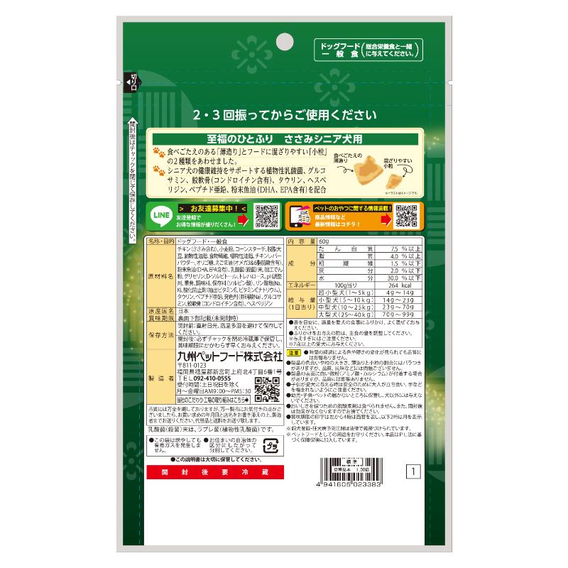[九州ペットフード]至福のひとふり 鶏ささみ シニア犬用 60g