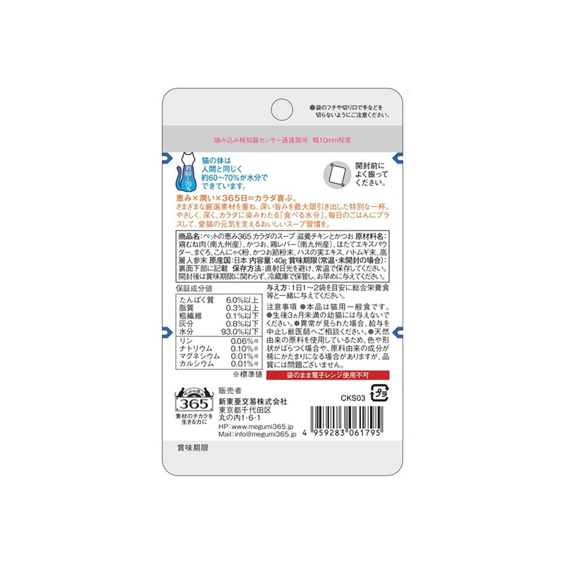 [新東亜交易]ペットの恵み365 カラダのスープ 潤いチキン 40g