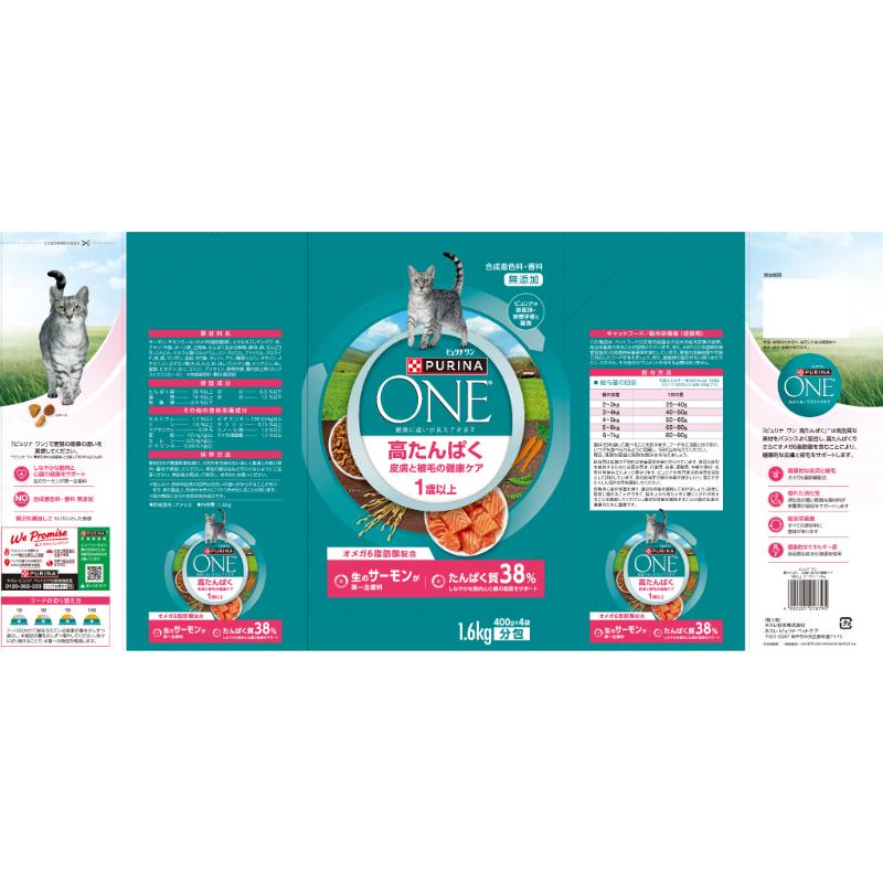 [ネスレ]ピュリナワン キャット ドライ 高たんぱく 皮膚と被毛の健康ケア サーモン 1.6kg(400g×4袋)