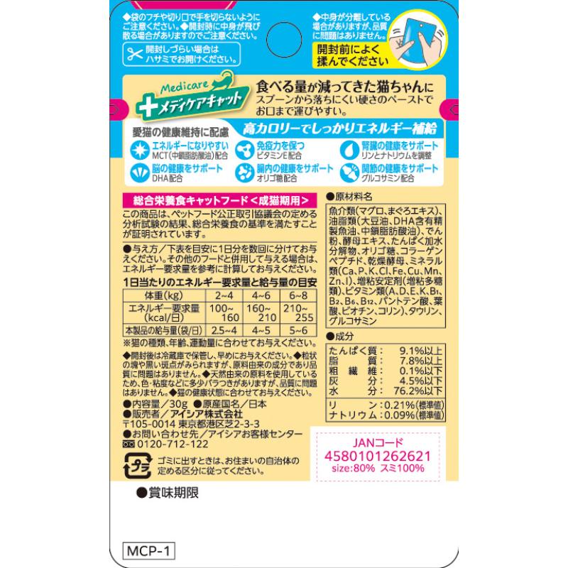 [アイシア]メディケアキャット 食べる量が減ってきた猫ちゃんに スプーンで与えやすい まぐろペースト 30g